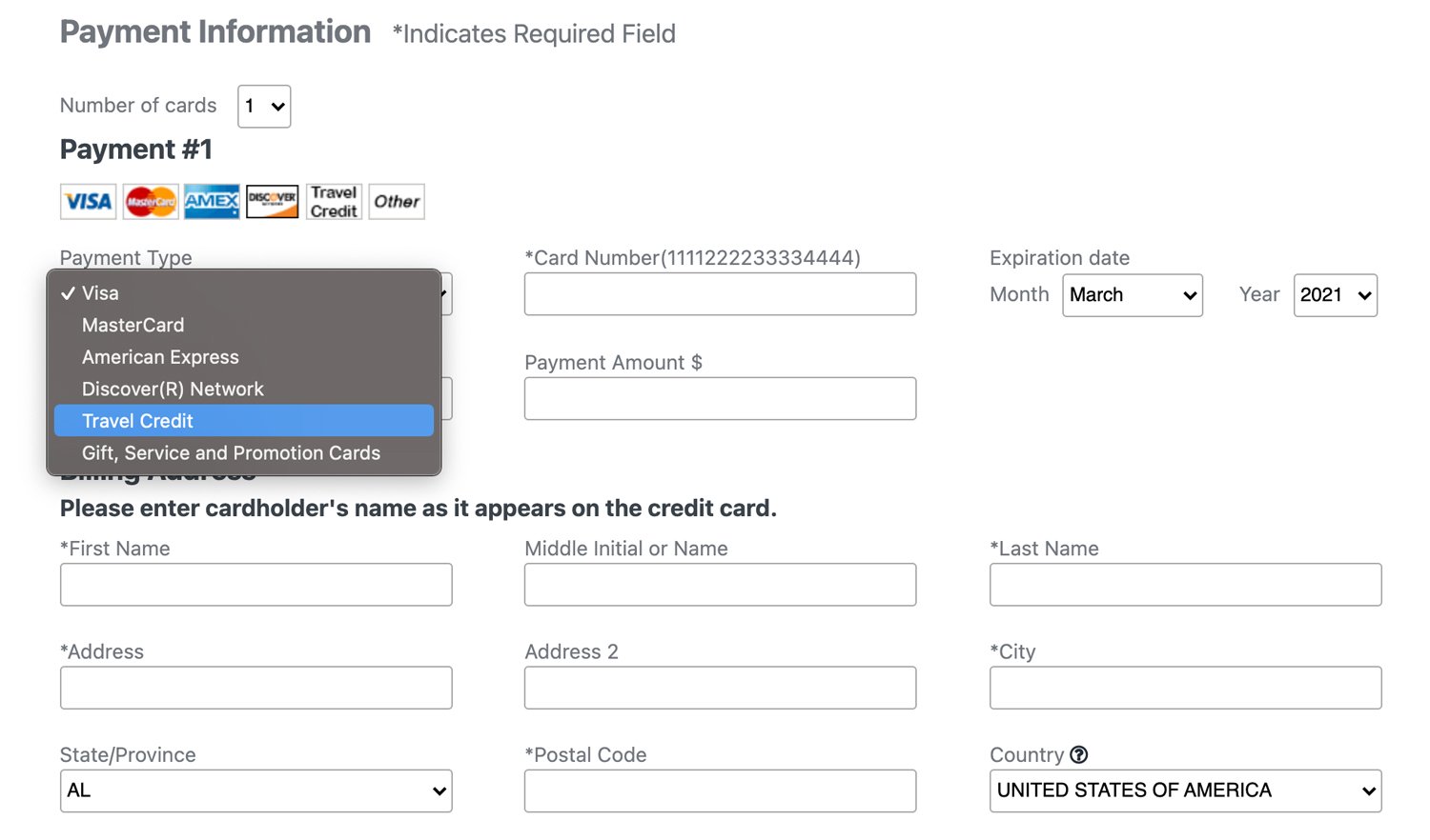 When you’re ready to complete your reservation and apply payment, select "Travel Credits" from the payment type options.